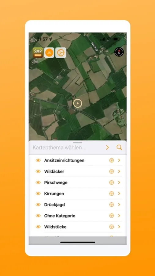 The diwima® SmartMap supports and supplements the Revier Cockpit. Geodata of the hunting ground (high seats, driven hunt stands, stanchions, etc.) can be recorded at any time and the coordinates can be shared with other hunters via GoogleMaps. The logging of the UVV checks of the raised hide facilities can be documented with the help of the checklists. In addition, stalking routes can be created as lines or game fields, game rest areas, game damage areas, etc. can be created as areas. However, the new filter ensures that the map always remains clear. Map themes, e.g. a driven hunt map including drives, can also be created in diwima® SmartMap.