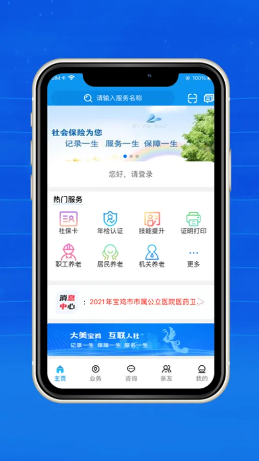 宝鸡人社是基于实名注册的全市公共服务平台,让老百姓足不出户享受人社服务。
