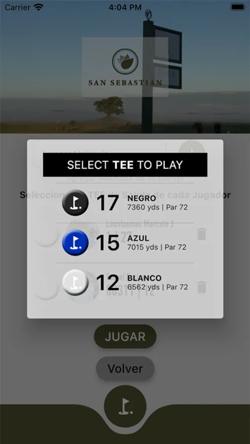 Seleccionara un club, un compañero de juego y sus respectivos Tees de salidas.
