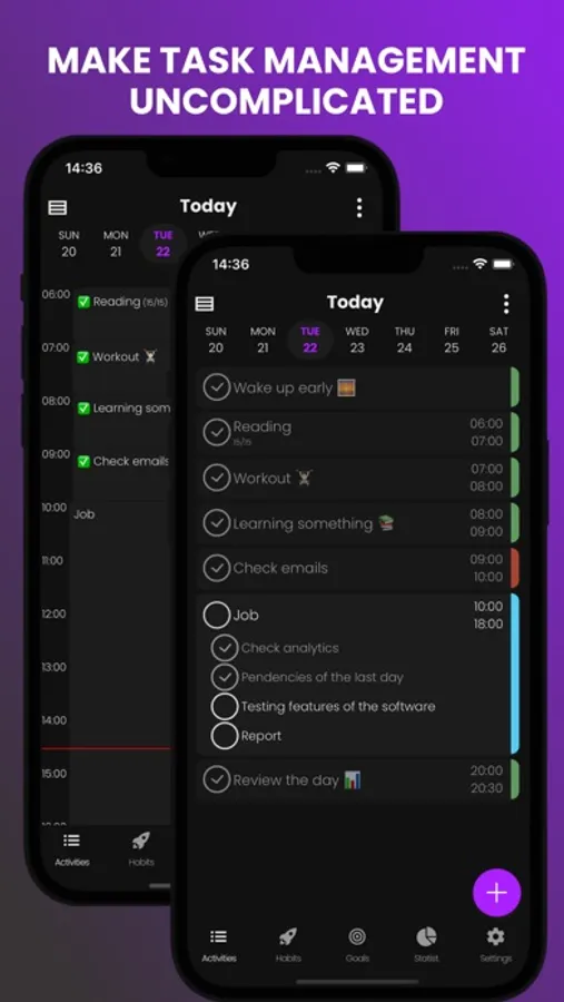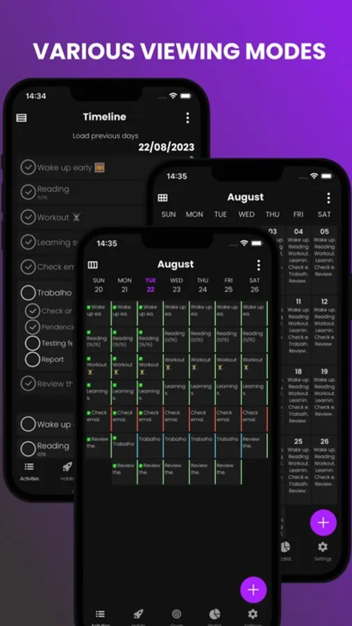 Organize your tasks using the Triad of Time method. Prioritize, set task frequency, and receive notifications to ensure you never miss an important deadline. Create checklists for your tasks. Categorize your tasks according to the Wheel of Life. Use the Timer to carry out tasks with focus and have 10 different modes of viewing your activities at hand: To-Do, Timeline, List and Agenda in variations of 1 day, 3 days, Week and Month.