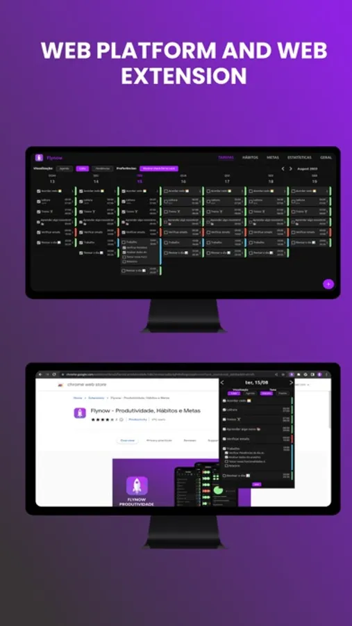 Access the app's features from your computer and manage your habits, goals and tasks with the Web Platform and Google Chrome extension.