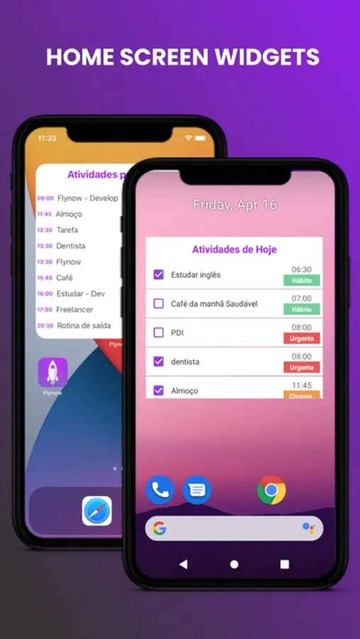 With the Widget, you can view your activities for the day and complete them from your cell phone's home screen, without having to open the application.