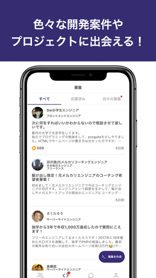 1. 仲間になって欲しいエンジニアや参加したい募集を見つける
