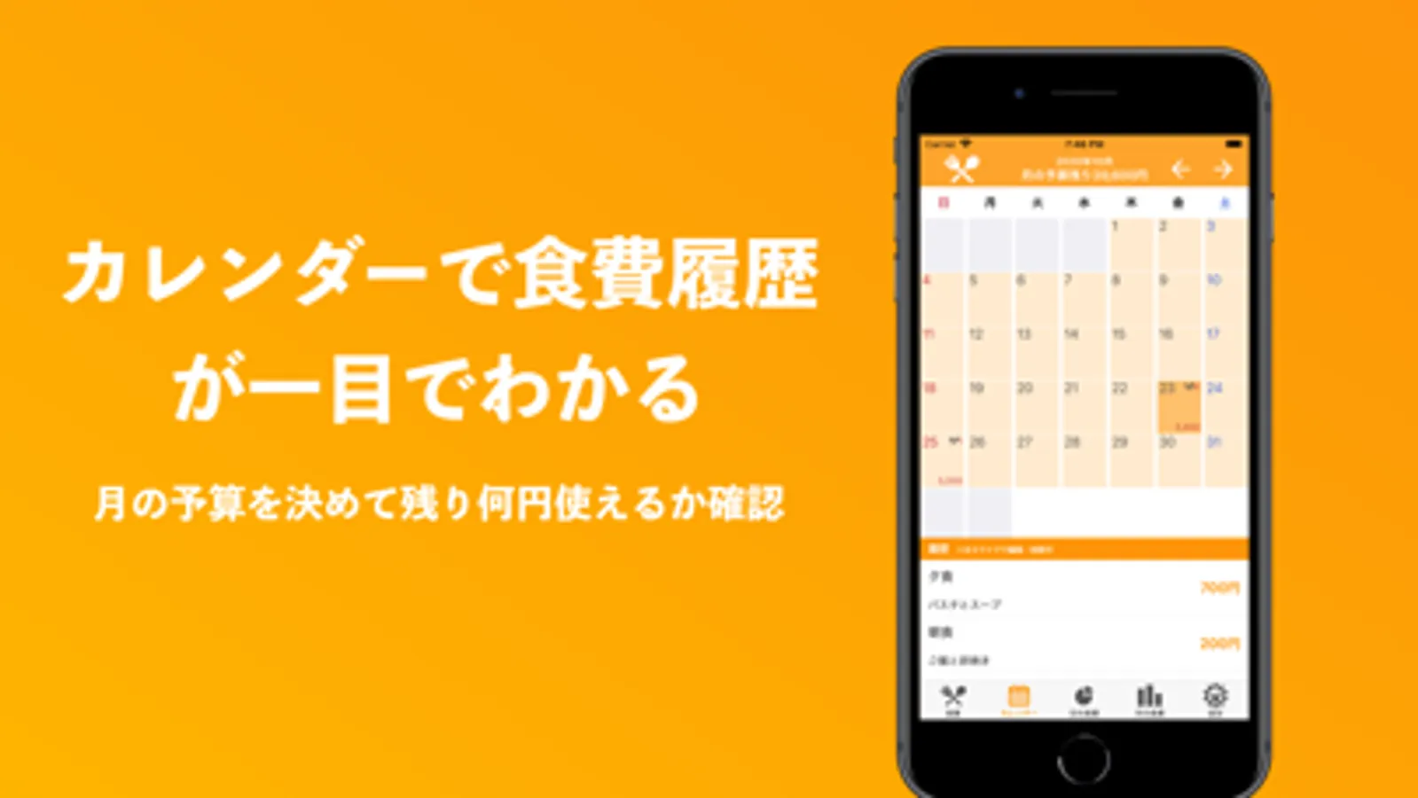 ・カレンダーから食費を入力できます。
