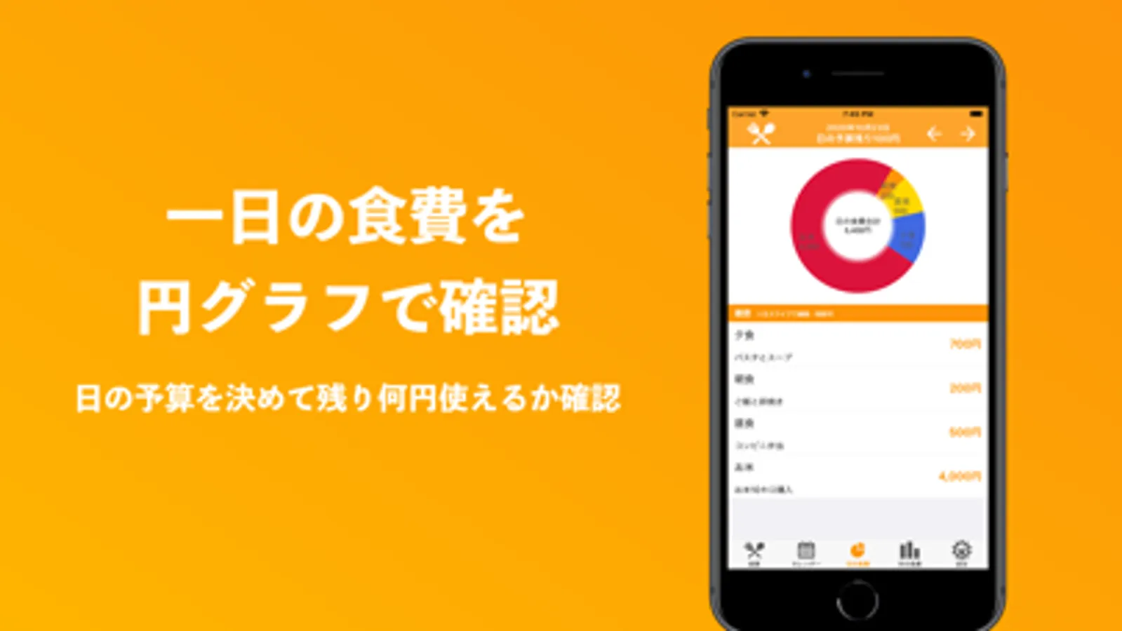 ・一日の食費の合計を円グラフで表示します。