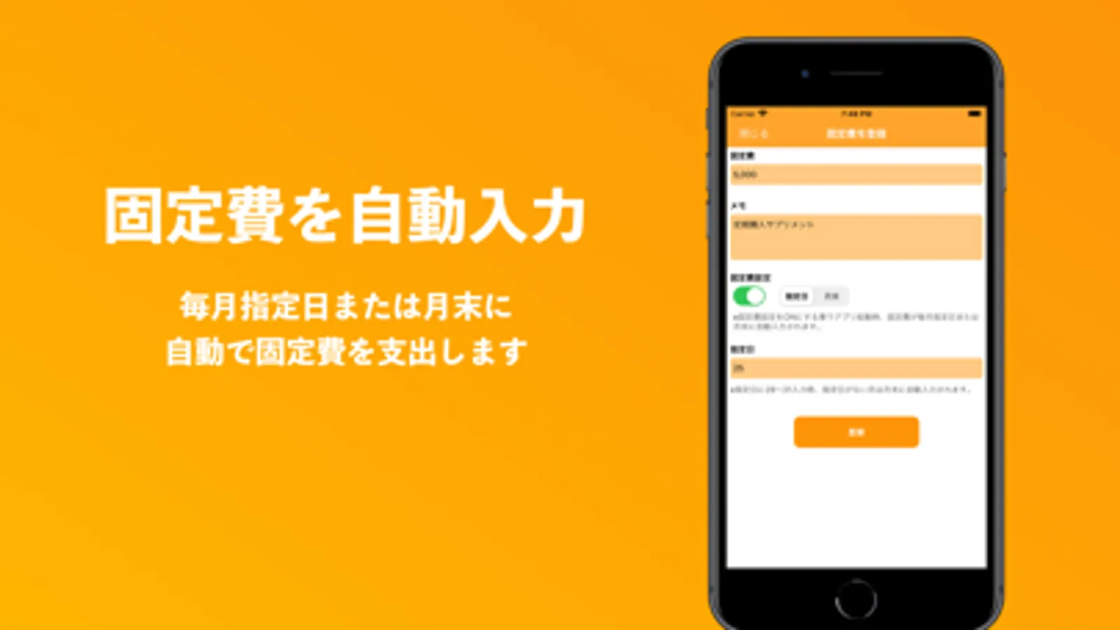 「固定費」を設定する事で、食費入力操作を自動化します。