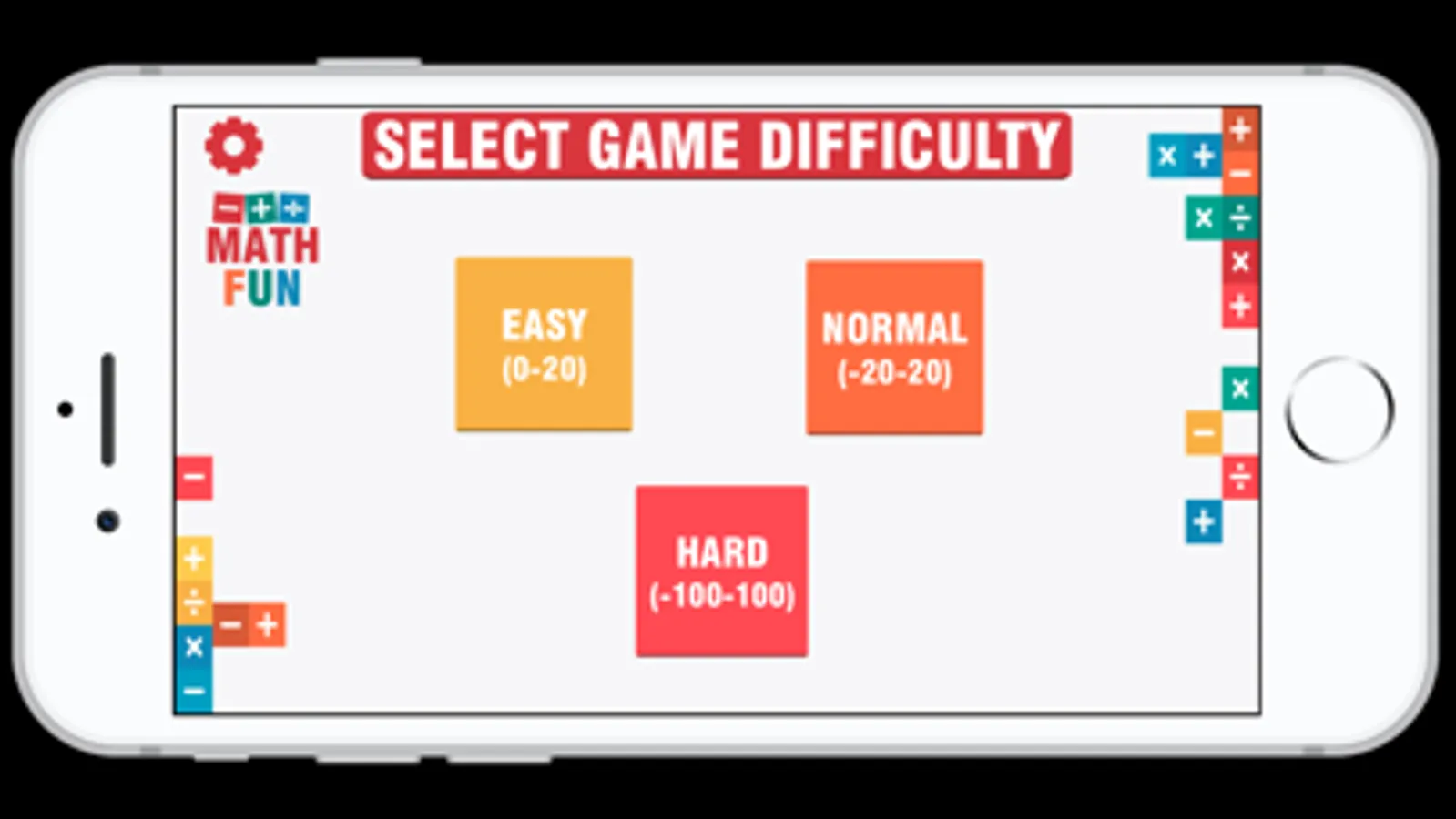 MathFun - Math Game application is designed for you to learn many maths items. Settings will help you to select Easy, Normal, and Hard type of games.