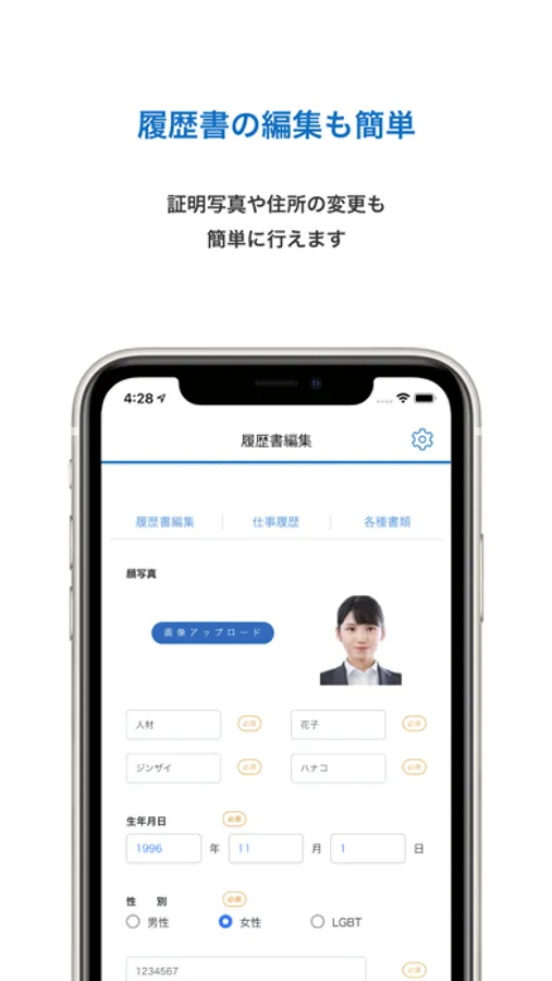 履歴書アプリWorple(ワープル)は、アプリで入力作成~応募送信までおこなえる「履歴書」に特化したサービスです。