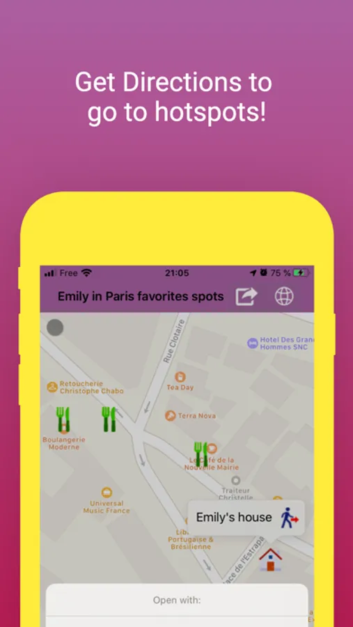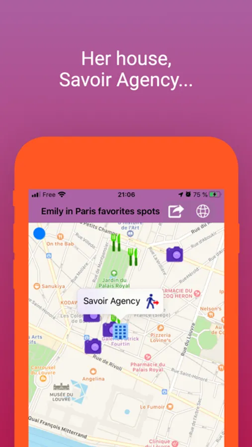 With this app, you will find on a map all the places and you can make your own Emily in Paris Tour !!!!