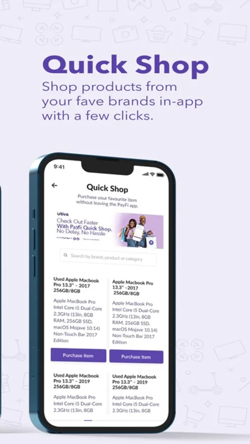 - Save time by browsing and shopping via the Payfi Quickshop directly from your mobile device.