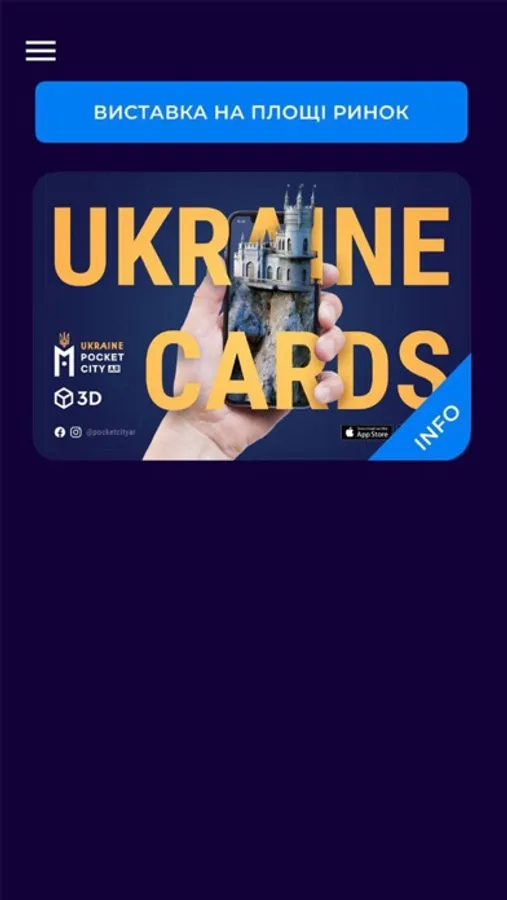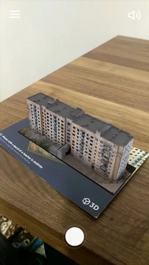 Для того, щоб роздивитись пам’ятки, натисніть «Почати» та наведіть камеру на фірмову поштівку — перед вами на екрані з’явиться будівля у AR. Також тут можна прослухати коротку розповідь про пам’ятку українською та англійською мовами.