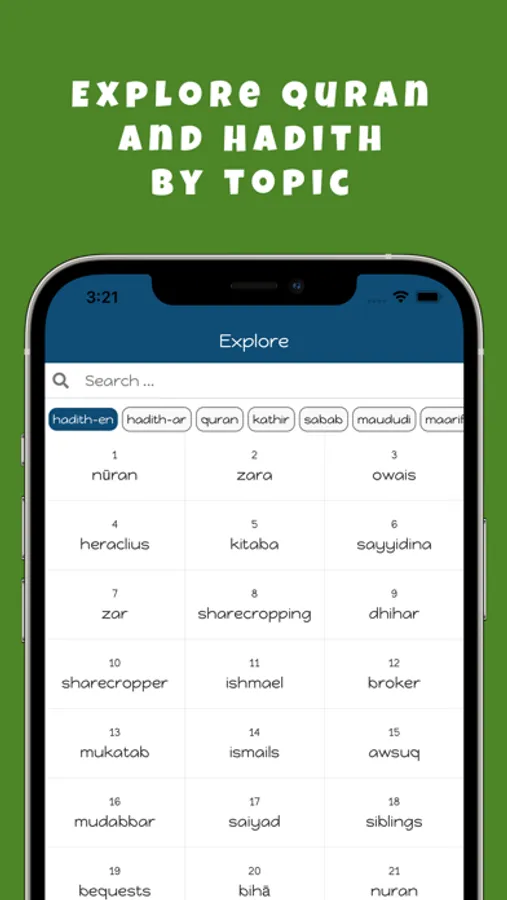 - explore the Quran and the Sunnah by topic and easily discover interesting and useful Islamic knowledge along the way