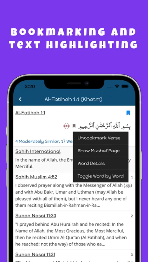 The app also features standard Muslim tools for studying and practicing Islam, including but not limited to: