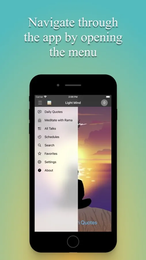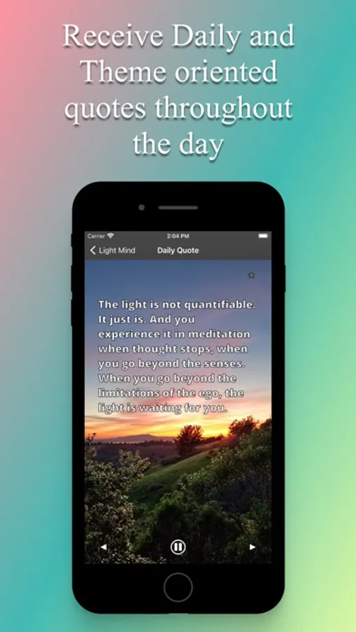 Welcome to Light Mind Meditation. This is a meditation app that guides you into the silent essence through profound wisdom. It delivers quotes to keep you inspired throughout the day, helping you stay in a clear state of mind wherever life takes you. It is free of charge and contains no embedded ads nor in-app purchases.