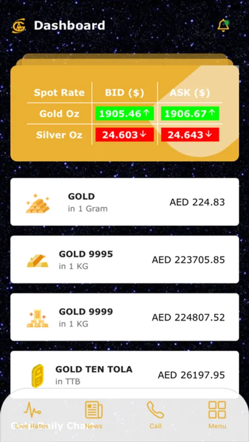 A detailed Gold Price for Amana Customers. This application can be installed by the customer to understand the pricing for each Gold Division as provided Amana.