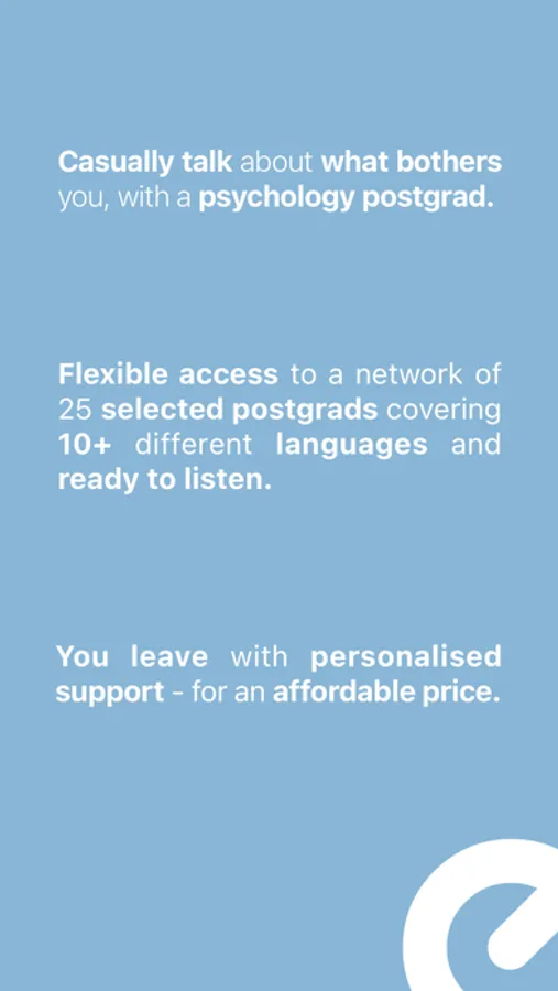 - Casually talk about what bothers you with a vetted psychology postgrad.