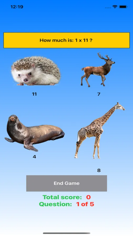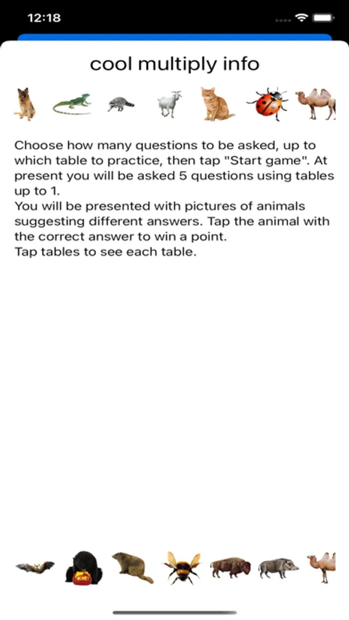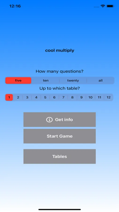 Set up how many questions in a game and up to which timetable to use and learn while having fun!
