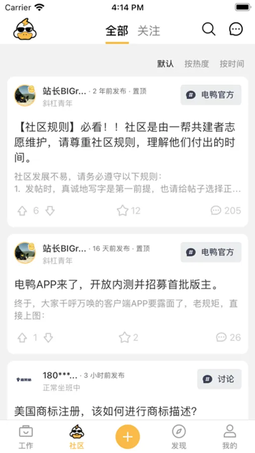 电鸭社区是国内最早的远程工作社区,也是互联网工作者们的聚集地。在社区,我们进行有价值的话题讨论,也分享远程、外包、零活、兼职、驻场等非主流工作机会。「只工作,不上班」是我们倡导的工作态度。