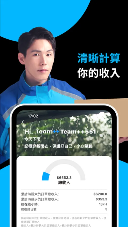 現在只需要你註冊成為Team++ 外送夥伴,上線接單無難度,我們會有專業客戶服務專員引導你開啟輕鬆賺錢的新一頁。