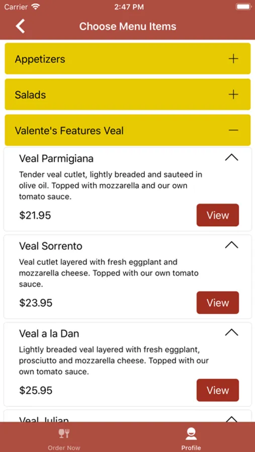 Valente’s Restaurant Screenshots