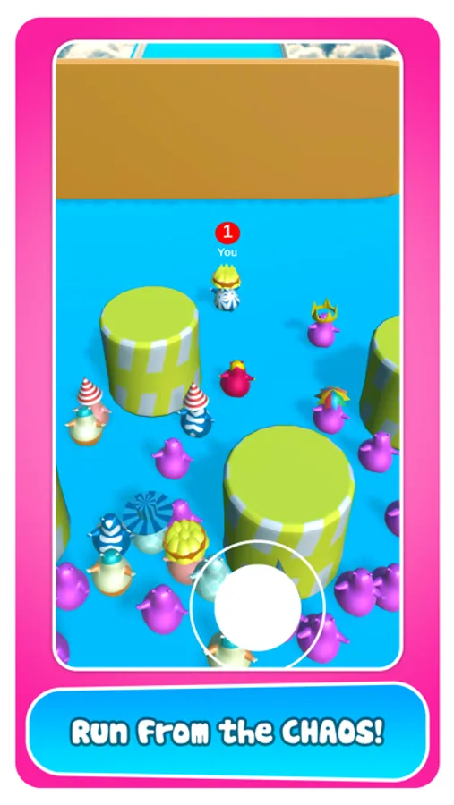 Use the navigation button to run, swerve, stop and do everything you can to get through obstacles and avoid getting knocked out of the game. But don’t worry, if you get knocked down, you’ll regenerate for another chance to get to the finish line.