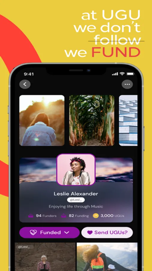 When you win, we all win. Whenever you win a contest in UGU, half of the prize money goes to you and the other half is split among your funders. So, when someone you fund wins a dare, you will win as well. Our unique model connects users around their passions and creates a system of shared economic mobility.