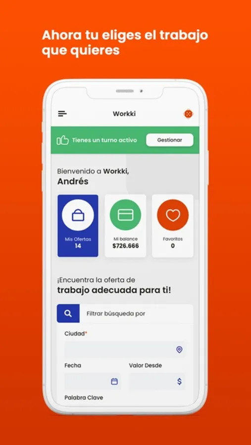 workki es una plataforma tecnológica que te permite conectarte con empresas que requieren tus servicios. Regístrate, busca ofertas laborales en el sector que mejor te desempeña y gestiona tu propio tiempo. Todo a al alcance de tu mano, fácil y sin complicaciones.