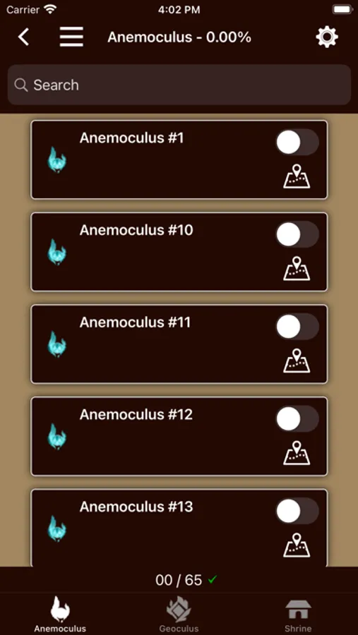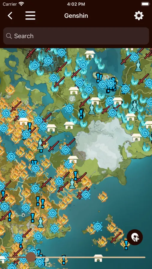Unofficial offline map for Genshin Impact. The map features the locations of: