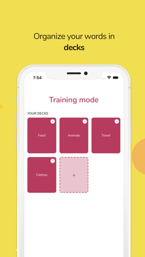 Flipping Cards allows you to learn words faster, with your own flashcards. Just add words to your wallet and then train your memory by organizing these words in card decks.