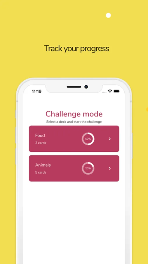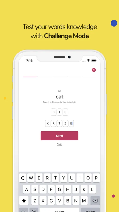 Other than studying words in Training Mode, you can test your knowledge in a quiz-like interface with Challenge Mode. This allows you to have fun while learning and keep track of your progress.