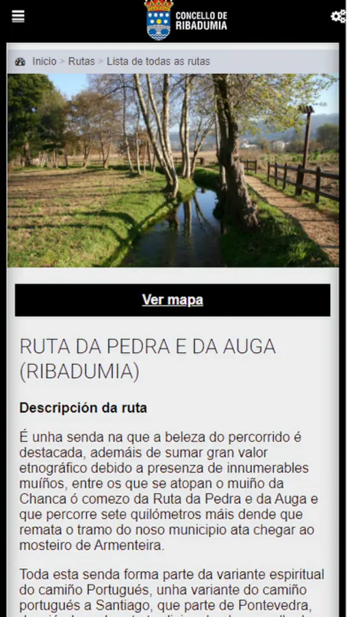 Mediante esta aplicación nos permite conocer toda la información de las diferentes rutas de senderismo que nos podemos encontrar en el Concello de Ribadumia, como puede ser la "Ruta da pedra e da auga", además de poder participar en las diferentes Búsquedas del tesoro disponibles en la aplicación siguiendo las pistas que nos indica nos llevarán a conocer diferentes tesoros que nos podemos encontrar por todo el concello de Ribadumia.