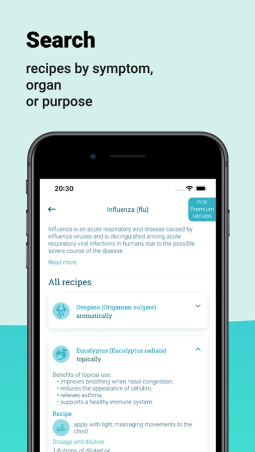 • Search will help you find the right use case by keyword like "flu", "lemon oil" or "calm down"