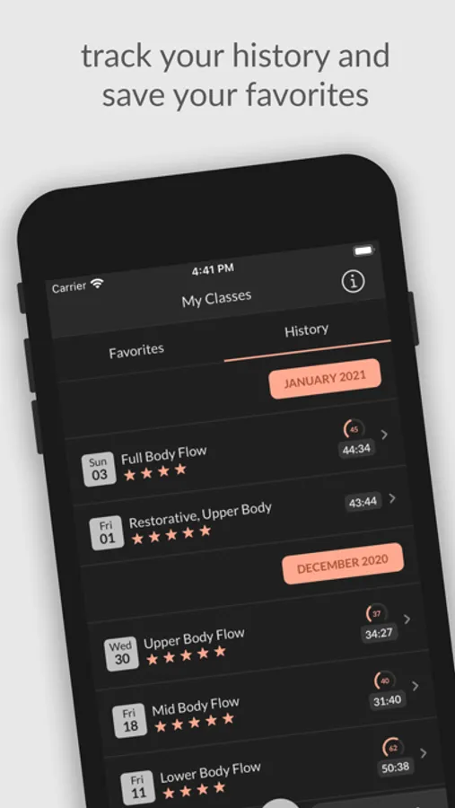 • History: Ever taken an awesome class and then completely forgotten how to find it again? Your class history keeps track of each class you take, as well as any ratings or notes you might put down, so you can not only remember when you were last on your mat, but also you can see what exactly you liked about it.