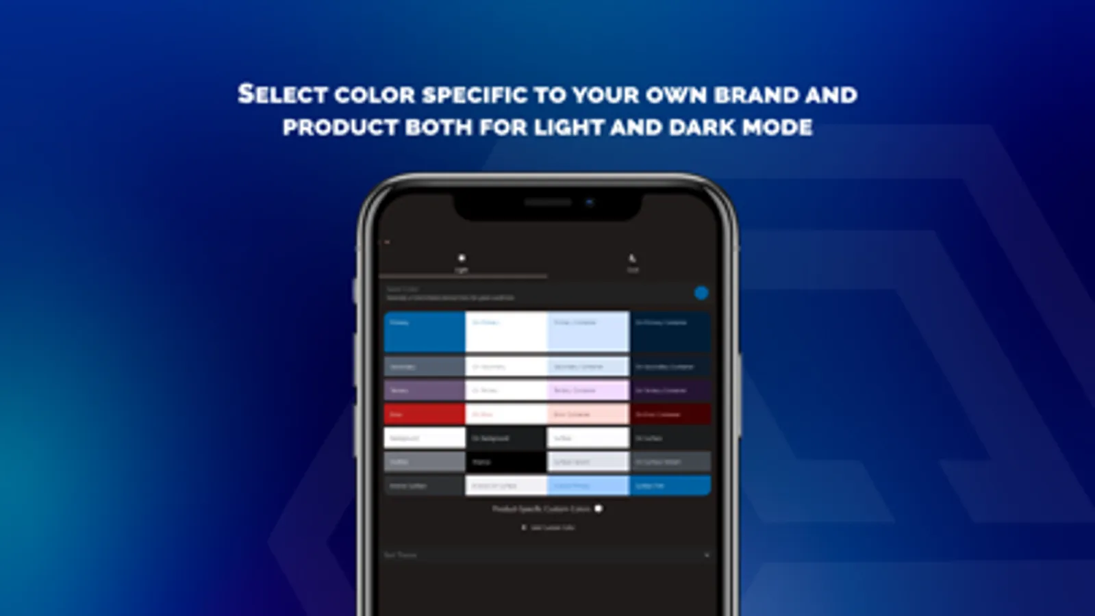• We help you apply color to your UI in a meaningful way. With Theme Builder you select a primary and a secondary color to represent your brand. Dark and light variants of each color can then be applied to your UI in different ways. You can also start with a seed color and generate variations that are consistent with Material Design.