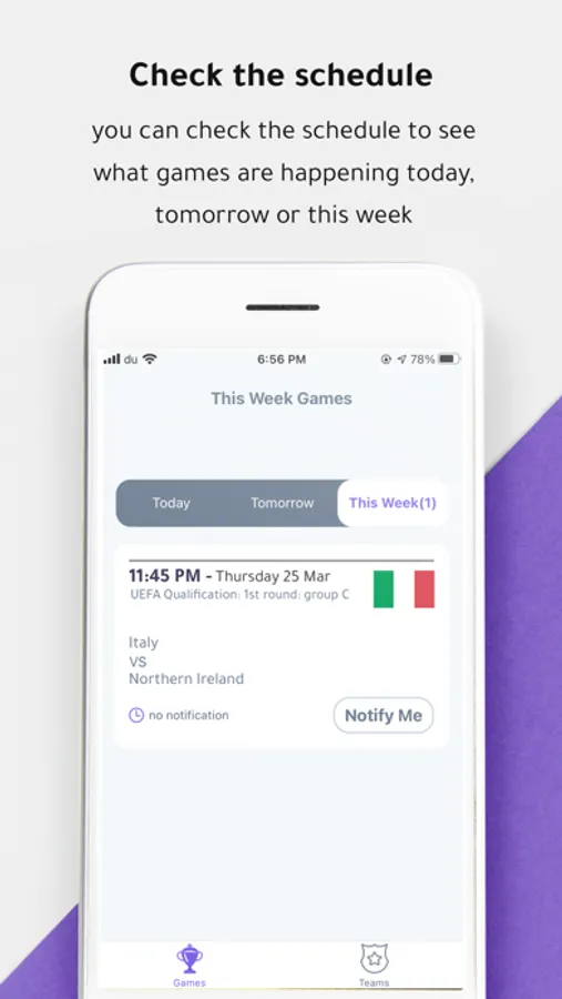 We represent the larger segment of the game fans who cannot remember the kick off times of these matches by heart and who always need a quick and easy reminder for when the game is about to start without all the Info that these people don’t want to read