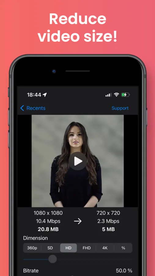 With this app, you can easily compress your videos to increase the free storage space on your device.