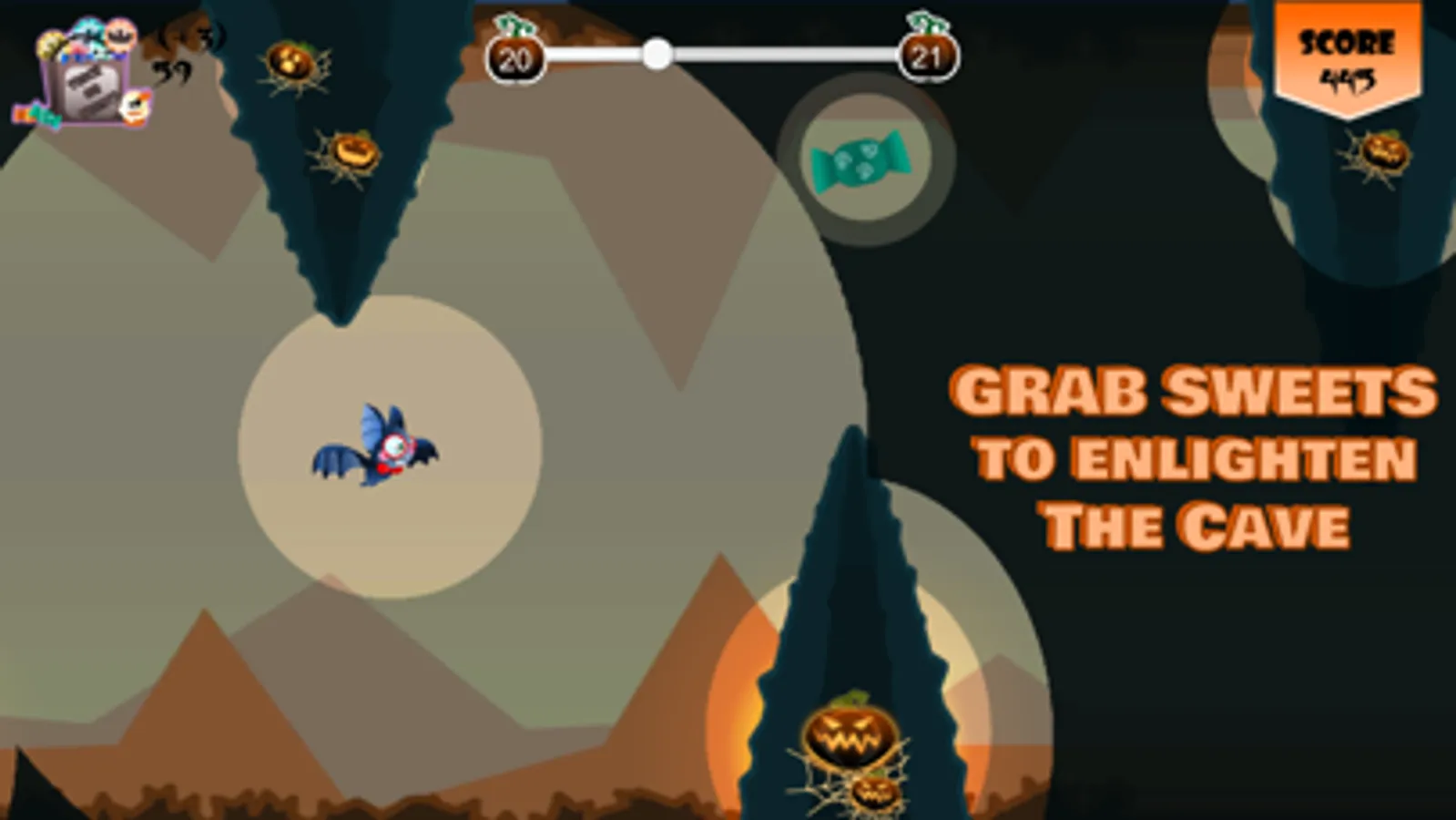 Help little bats with safe flight through caves. Tap the screen to make their wings wave and watch out for all obstacles. Darkness in caves is scary, but sweets collected during flights enlighten parts around you, so don't worry.