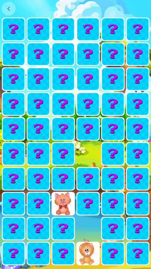 Memory Animal Match Up is a game about matching two cards with the same picture. Gameplay consists of rounds in which two cards are flipped and if they match, they are removed from the board. Otherwise they are flipped back and game continues with the next round. Game ends when all cards are removed from the board.