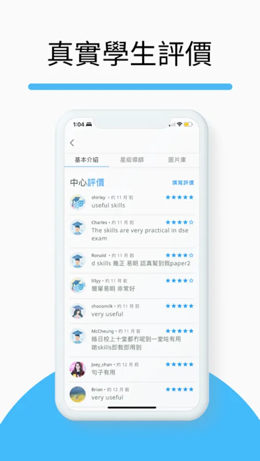 . 資訊完全透明,突出每個導師的個人特質,更設比較學生評價功能,足不出戶掌握時間表、教學風格、上課模式等最全面資訊。