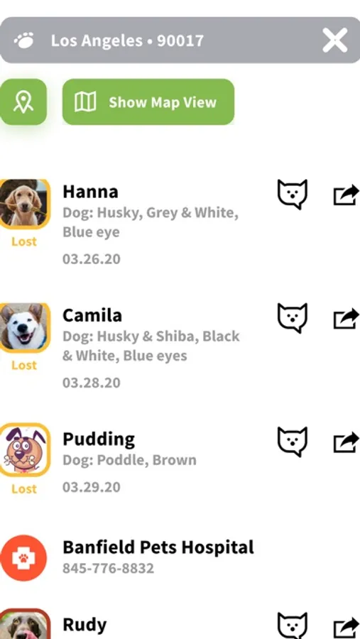 Petkey hosts the largest Nationwide missing pet network. Lost and Found pets can be listed for free in an effort to get the word out quickly and reunite missing pets with their families. If you are missing a pet you can view our live map of found pets to see if your pet has been recovered. If you have found a pet and are looking for their family you can add that pet to the map to help get the word out and reunite that pet. Every second counts so add your pet to the network today their profile is prepared in the event of an emergency. Having a profile for your pet will also provide you with quick access to your pet's important details and virtual ID. Once your pet is in the network you can receive immediate notifications if your pet has been found. You can also have some fun with it and create a custom Petmoji of your pet.