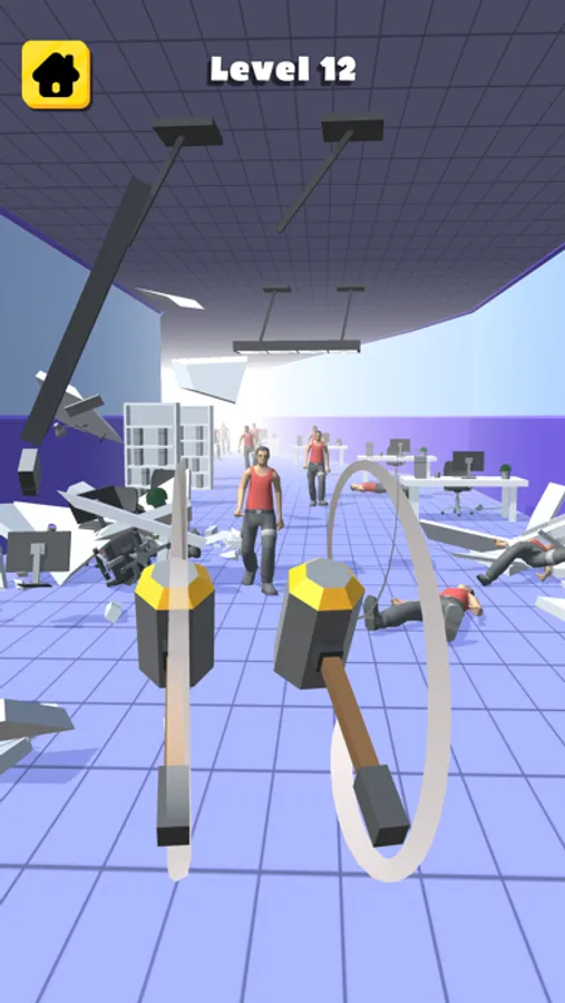 Throw and break everything! The hammers will come back after every shot. Don't let the enemies get near you.