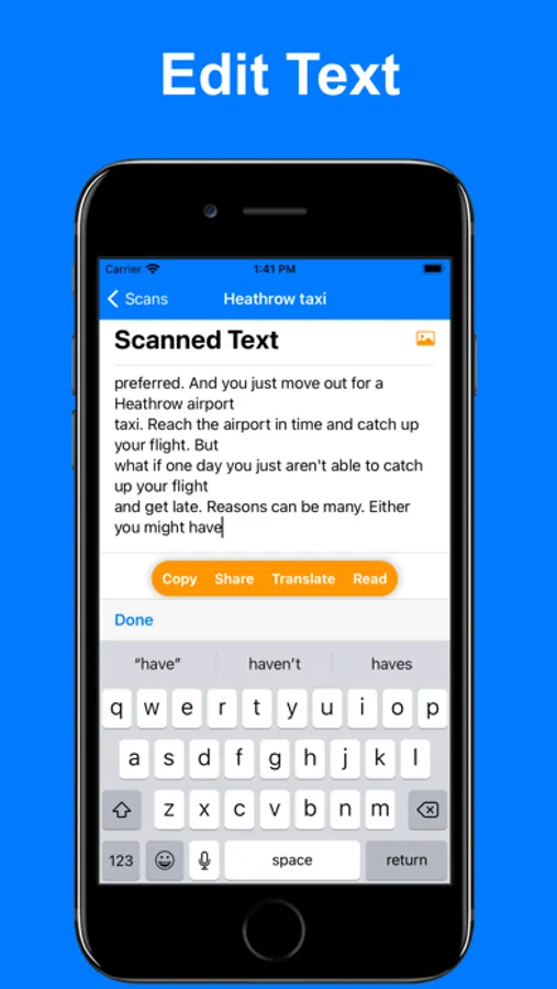 If you choose to purchase Text Scanner Pro, you can subscribe or pay a one-time fee. Payment will be charged to your Apple ID account at the confirmation of purchase. Subscription automatically renews unless it is canceled at least 24 hours before the end of the current period. Your account will be charged for renewal within 24 hours prior to the end of the current period. You can manage and cancel your subscriptions by going to your account settings on the App Store after purchase. Current Text Scanner Pro subscription price starts at $3.99 USD/month, and one-month and 12-month packages are available. Prices are in U.S. dollars, may vary in countries other than the U.S. and are subject to change without notice. No cancellation of the current subscription is allowed during the active subscription period. If you don’t choose to purchase Text Scanner Pro, you can simply continue using Text Scanner for free.