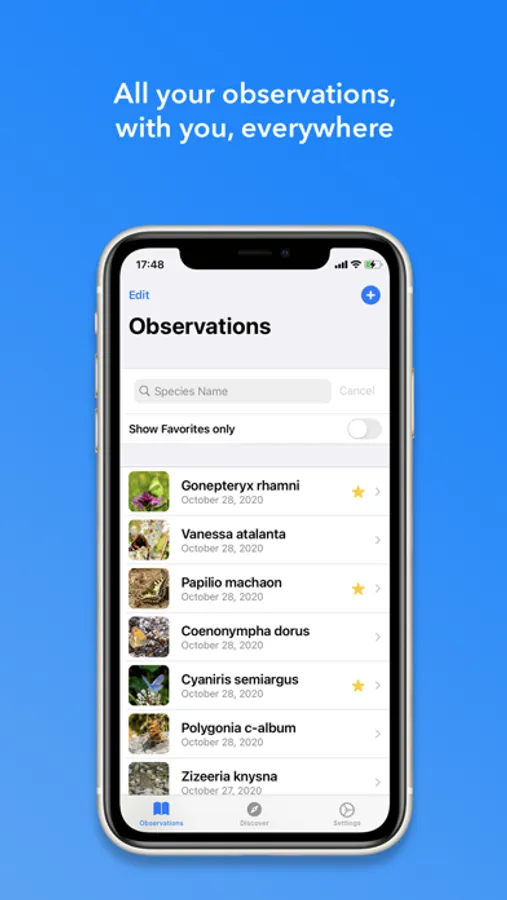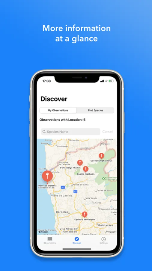 - Use the map in the Discover screen to know at a glance where you discovered new species.
