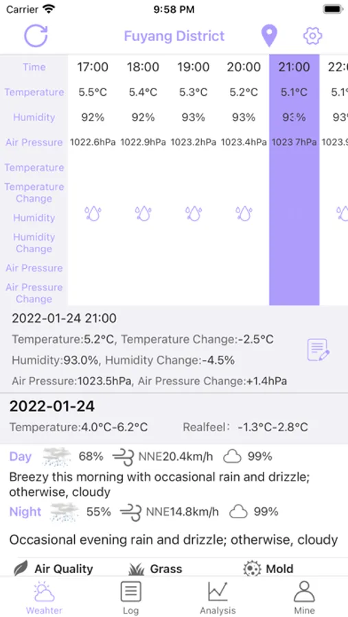Hourly weather forecast and analysis, daily weather, air pollen, health index forecast