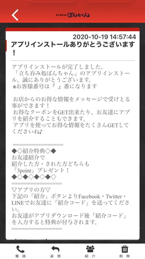 ぽんちゃんのアプリをSNSを通じてお友達に紹介する事ができます。