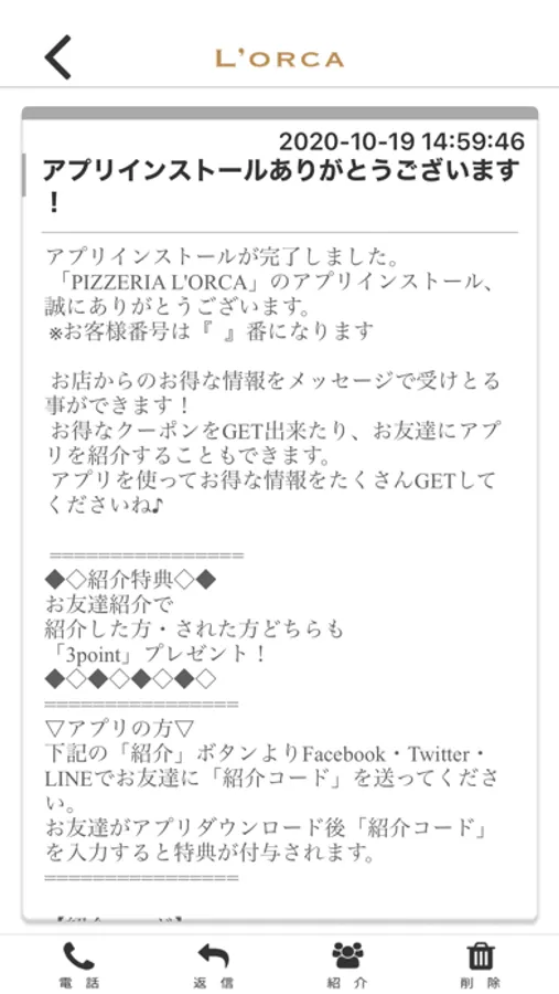 L ORCAのアプリをSNSを通じてお友達に紹介する事ができます。