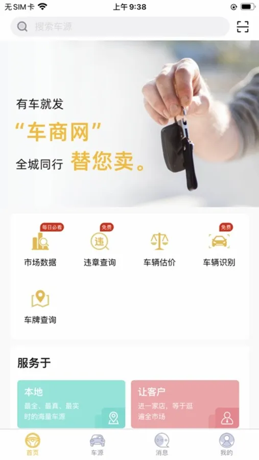 车商网是为了解决市场分散,二手车行业内找车难,车源不能及时共享而导致客户流失问题所研发的行业内App,现如今各大网络平台,低价贴,虚假车源,虚假照片泛滥。车商网app通过集中真实实时在售车源,做到购车客户《进一家门店,等于逛了全市场》,做到《不因为车源而流失一个客户》,采用共享车源数据,共同销售车辆的B2B模式,最终实现互联网模式下的产业分工、共同协作从而实现行业价值最大化。