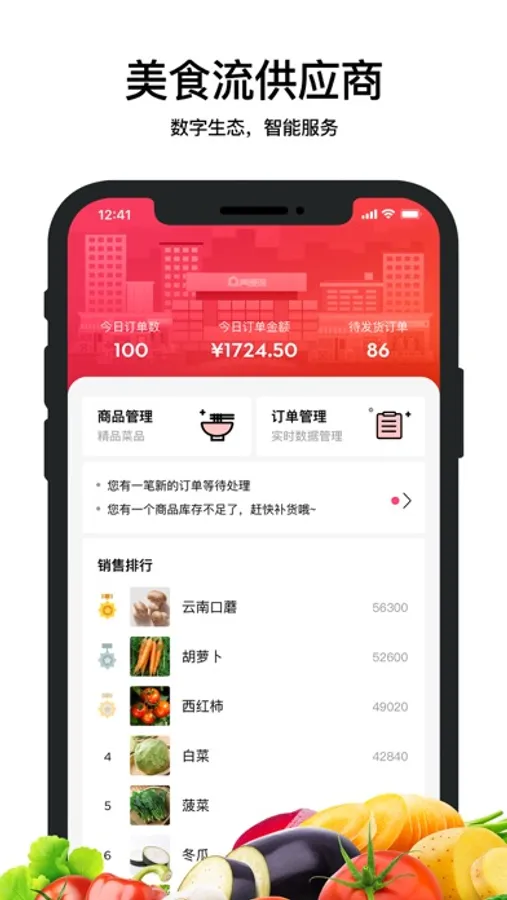 1、后台新增运营商账号,填写供应商资料,供应商收到短信通知,根据手机号登录APP,进行签约,签约后才能进行菜品管理等操作。