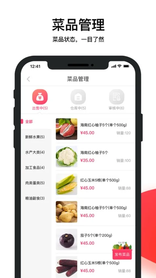 2、首页-菜品管理,可编辑菜品进行发布,发布后,后台审核通过即可上架。