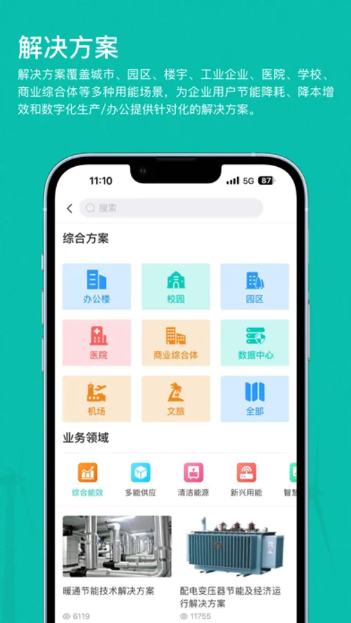 解决方案覆盖城市、园区、楼宇、工业企业、医院、学校、商业综合体等多种用能场景,为企业用户节能降耗、降本增效和数字化生产/办公提供针对化的解决方案。